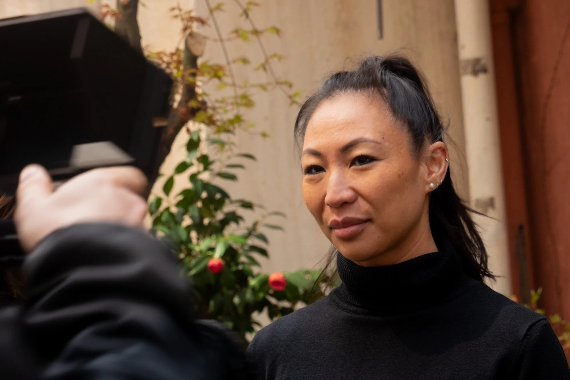 The interview took place just a day after the family's arrival in Korea, outside the Eastern Social Welfare Society in Sinchon—the same agency that had facilitated Kimberley’s adoption. She was joined by her sister Alex, who traveled with her and participated in the interviews to provide emotional support. Given the proximity to a busy road, both interviews were filmed behind the building, where it was quieter. One was conducted before the family’s appointment, the other shortly after.