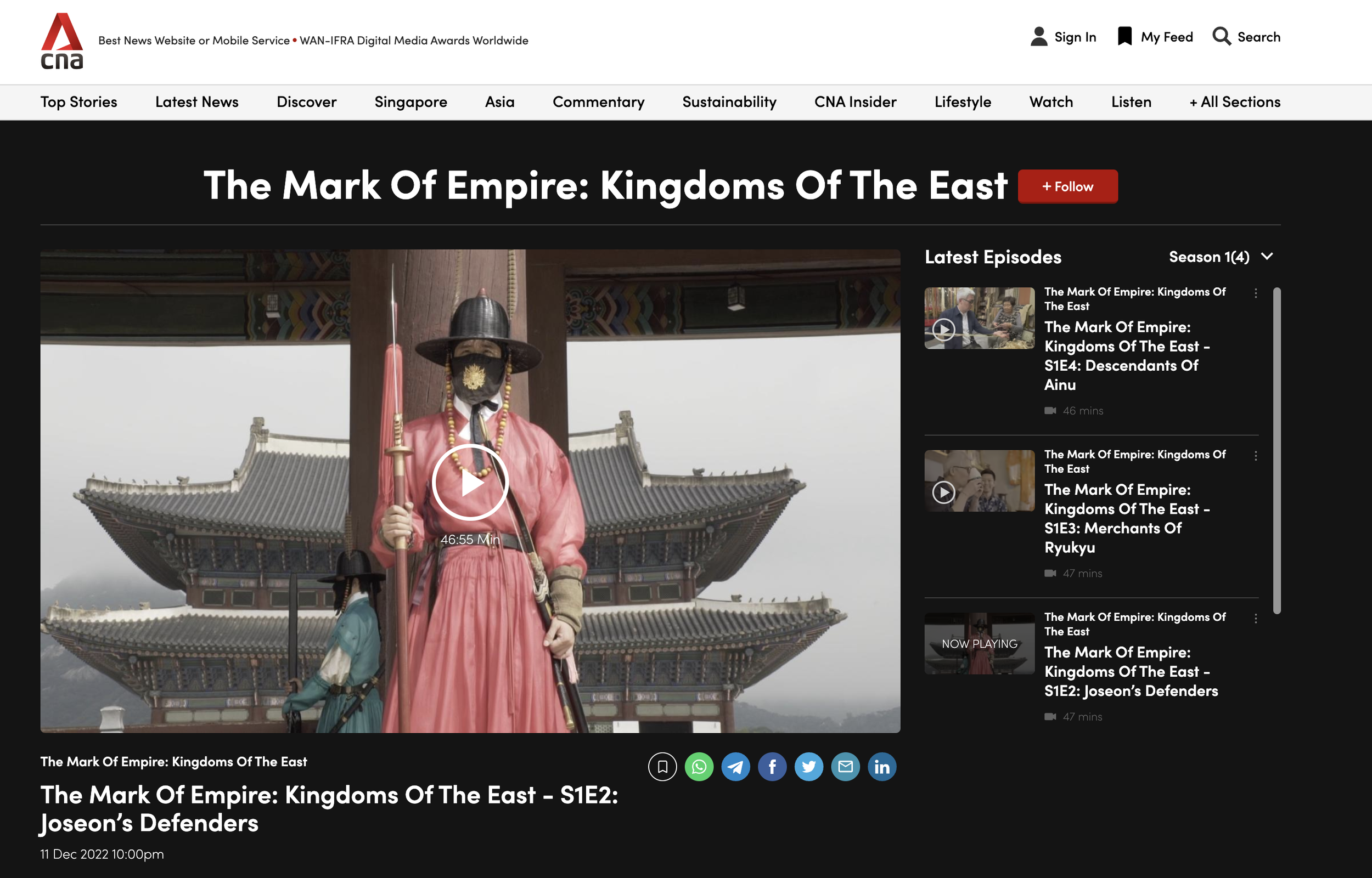 The Mark Of Empire: Kingdoms Of The East - S1E2: Joseon’s Defenders Broadcast Television Show for Channel News Asia